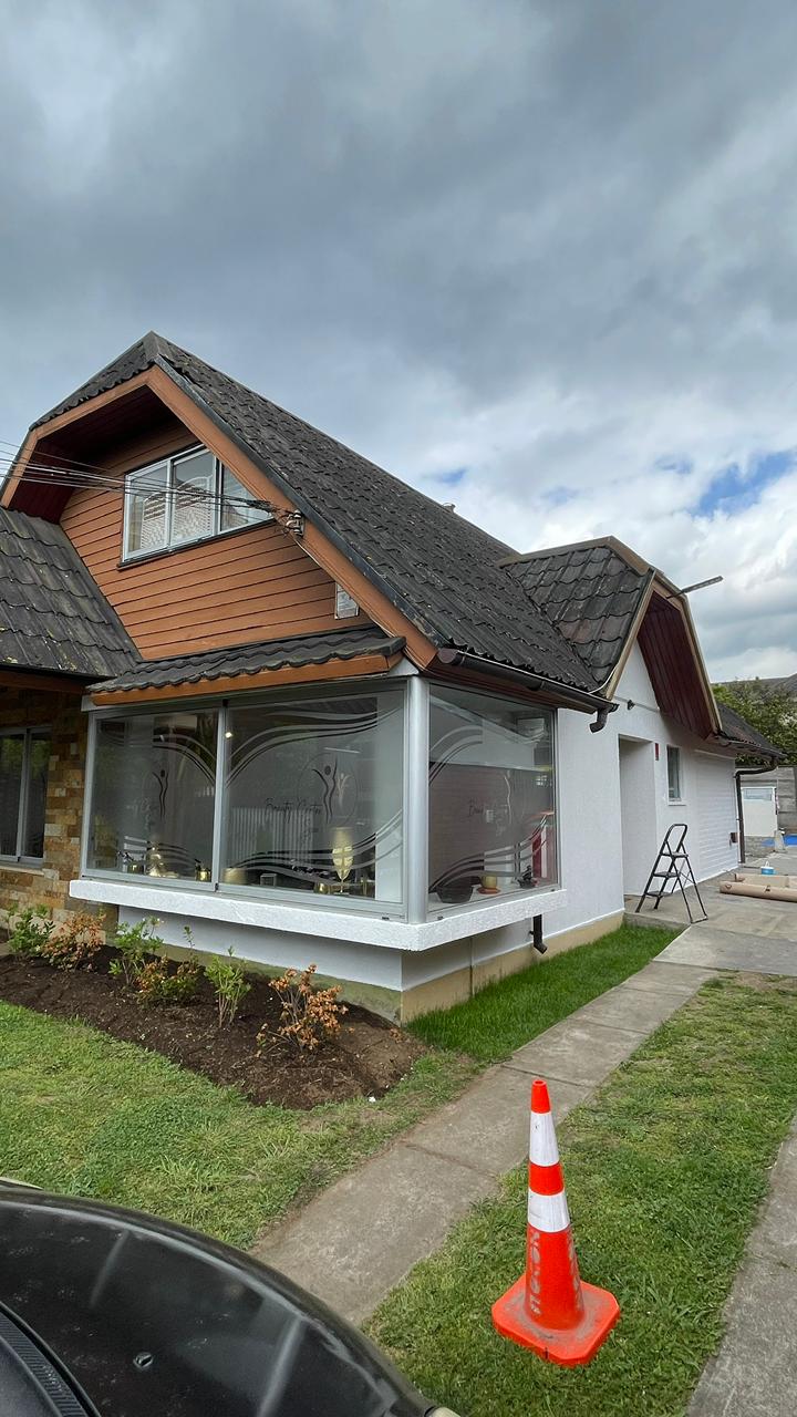 - Ventanas perimetrales de gran formato, con sistema de control visual mediante gráficas esmeriladas, que permiten el ingreso de luz natural manteniendo la privacidad requerida para una clínica estética, aportando calidez y bienestar al espacio interior.
